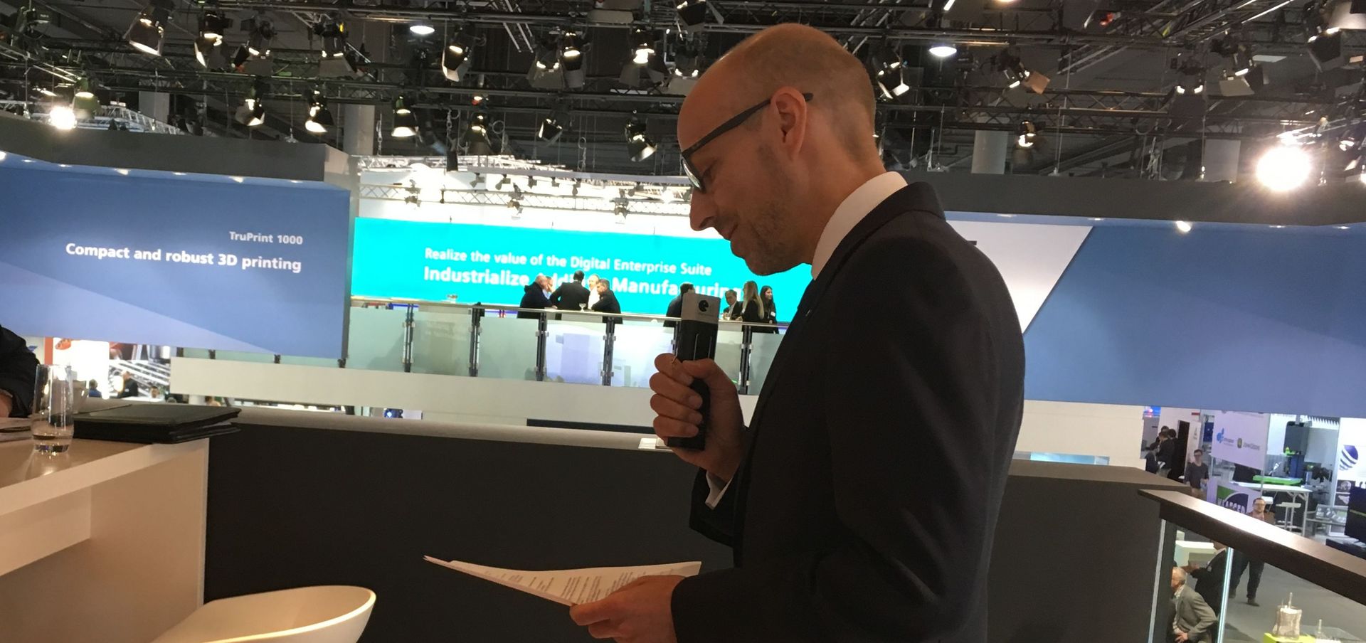 A highlight of the trade fair is the TruPrint 5000 - the interest of the visitors is great.