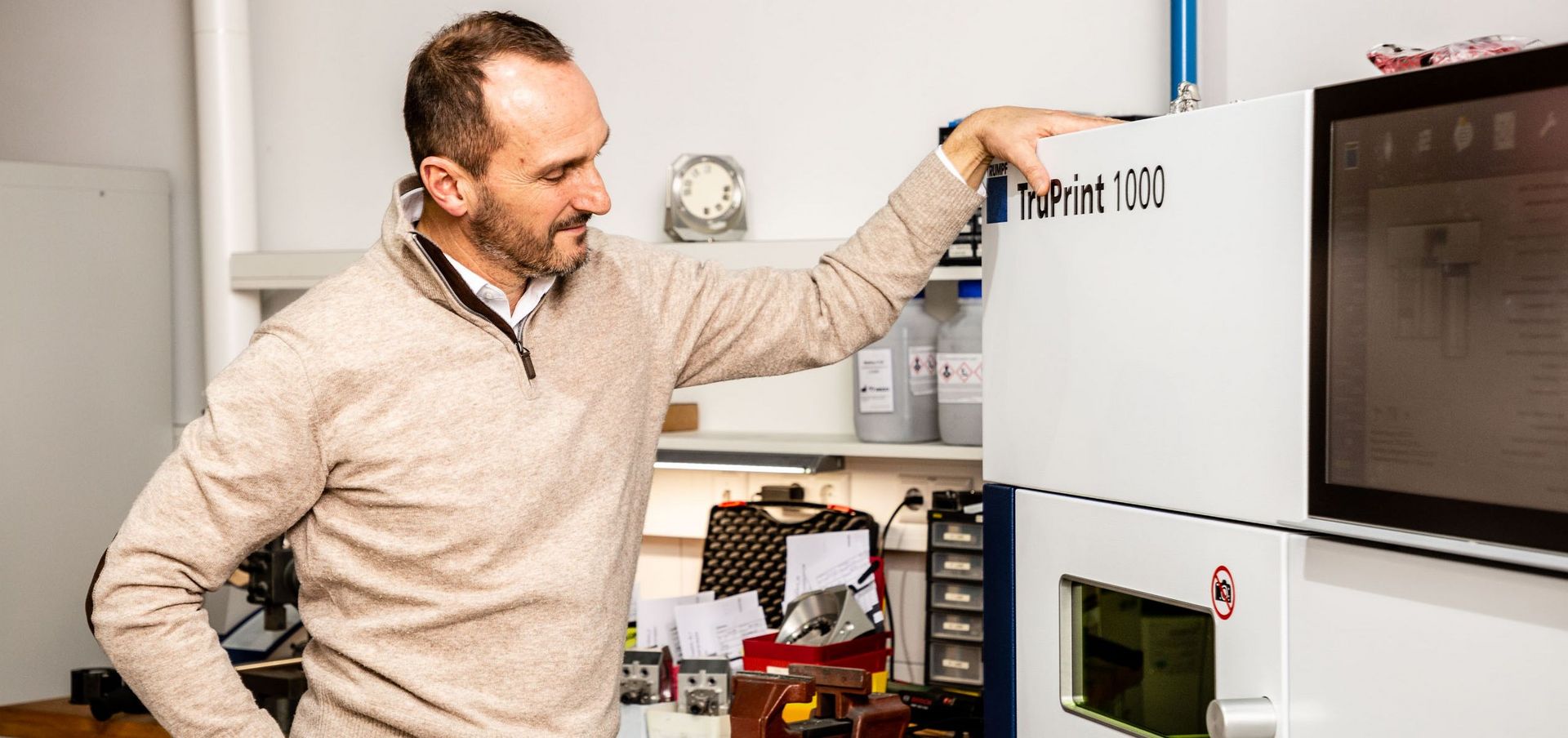 To develop its innovative fabrication process for telescopic crowns, Teamziereis spent nine months working with five partners, one of whom was TRUMPF:  “We tried out laser melting for the first time back in 2018, but we weren’t happy with the surface quality of the printed parts,” says Ziereis. “Nonetheless, we saw that the technology had lots of potential, so we were excited when TRUMPF presented their TruPrint 1000 with its pulsed laser technology – and even more excited when we became the first customer in the world to try it out! I’m totally convinced by this new technology’s merits. There’s no doubt in my mind that additive methods will revolutionize manufacturing in the dental industry.”