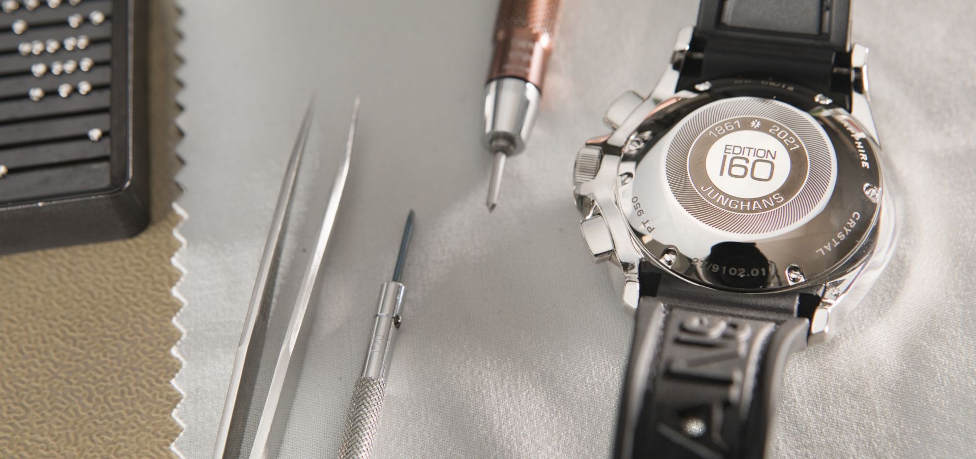 The watch backs belong to the limited Meister S Chronoscope Platinum Editon 160 of the Schramberg watch manufacturer JUNGHANS. The company is launching the sports watch to mark its 160th anniversary. Matthias Stotz, Managing Director at JUNGHANS, explains, "This is our third limited edition 12, and with a retail price of 16,000 euros, it's a luxury product that collectors and watch lovers worldwide are eagerly awaiting."