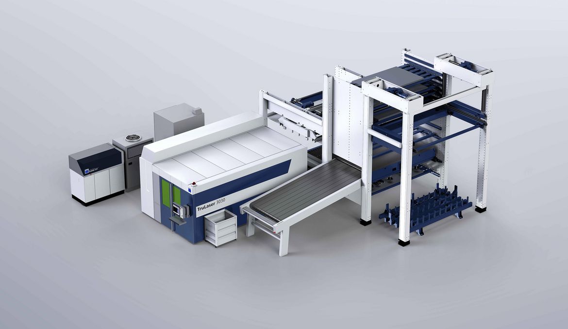 TruLaser 3030 fiber,装备有 LiftMaster Compact、PartMaster 和 TruStore 3030