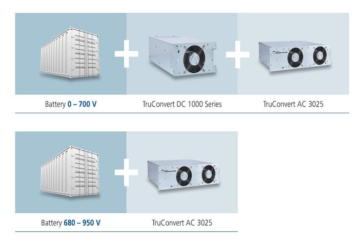 通快霍廷格电子可提供 48V - 900V 宽电压范围的解决方案,既可以作为直接 AC 连接,也可以作为 DC-DC 转换器。这使您在电池设计(电池数量)上享有高度自由。