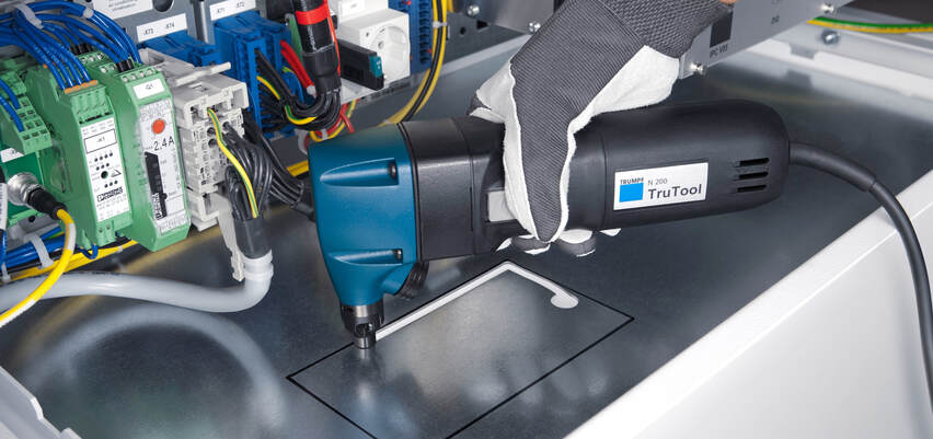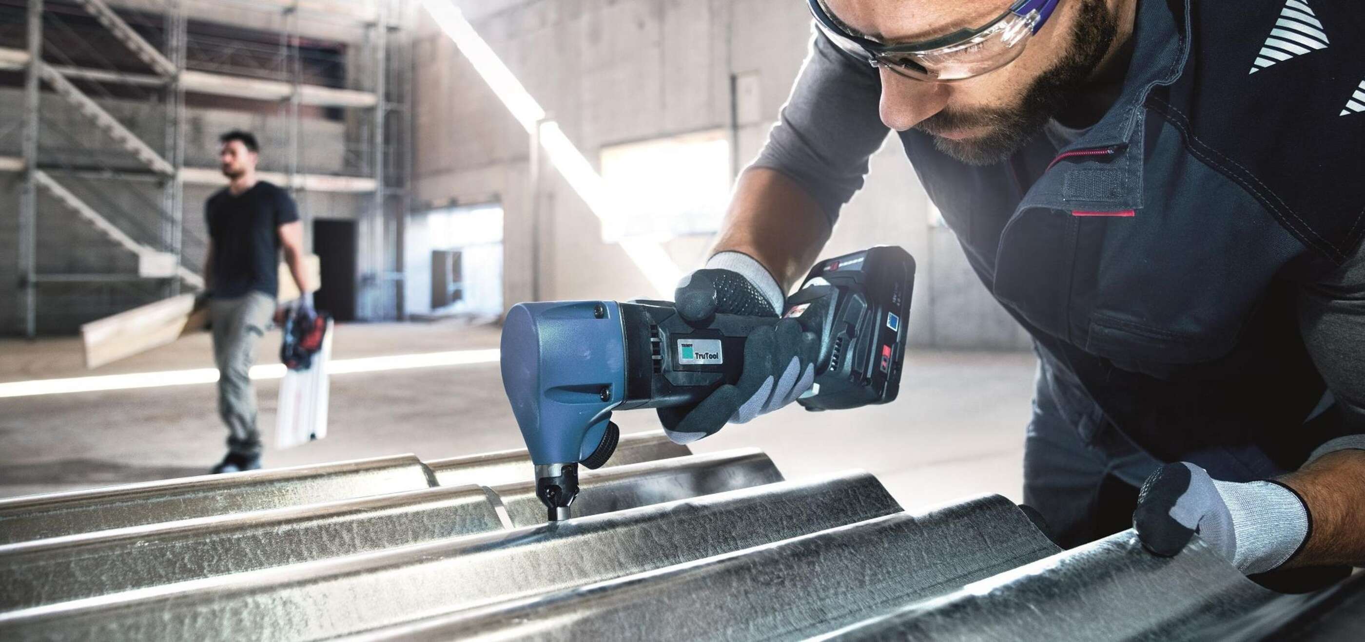 使用这款充电式机器可首度实现无线切割板材厚度高达 2 mm 的波纹板材和扁平板材。由于该机器可以原地旋转,即便是内截面和缺口也能轻松加工。同时无需工具即可更换切割方向。无需额外工具,即可迅速进行凹模和冲芯更换。根据需要可为 18V LiHD 电池型 TruTool N 200 装备和扩充其他模具。如此一来,也能轻松切割例如梯形波纹板。同时,4.0 Ah/18V LiHD 电池可确保较长的运行时间。