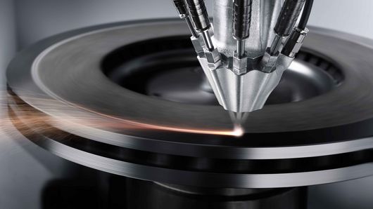 激光金属熔覆 是一种适合金属和金属陶瓷混合材料的增材制造工艺。借此可以打造或修改 3D 几何形状。使用该生产方法,激光也可以进行修复或镀膜。因此在航空航天领域,增材制造被用于修复涡轮叶片。在工具和模具制造领域,可以修复破裂或磨损的边缘和造形功能表面,或者甚至是在局部加装装甲。为了防止磨损和腐蚀,在能源技术或石油化学领域,为轴承位置、滚子或液压部件镀膜。而且在汽车制造领域也使用增材制造。在此对大量部件进行改良。