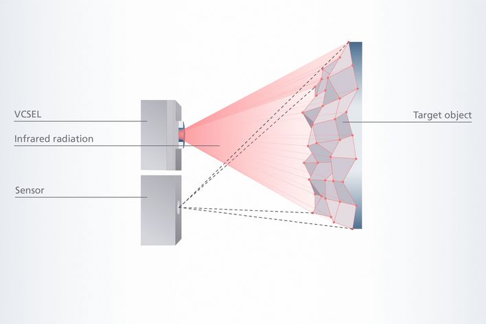 娱乐电子、工业和汽车领域的许多光学应用都基于高要求的 3D 多传感器系统。VCSEL 解决方案非常适合作为光学传感器中的光源,通过这种方式甚至可以实现复杂的 3D 识别。为此,将使用不同的光学传感器技术,例如时间差(ToF)、结构光和自混合干涉(SMI)。这些光学传感器技术依赖于先进的光源,例如基于激光的 VCSEL(垂直腔面发生激光器)阵列来照亮场景或目标。